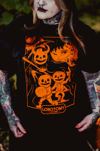 Elevate your style with our 'Pumpkin Kids' Retro' tee, capturing the nostalgic essence of classic Halloween postcards. Crafted from a bone-chilling blend of 65% Polyester and 35% Ring Spun Cotton